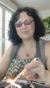 Sylvie Lepage, Designer en bijouterie et Perlier d’Art, travaille selon la tradition du filage de verre, une technique délicate qui consiste à fondre et modeler le verre de Murano pour lui donner vie.